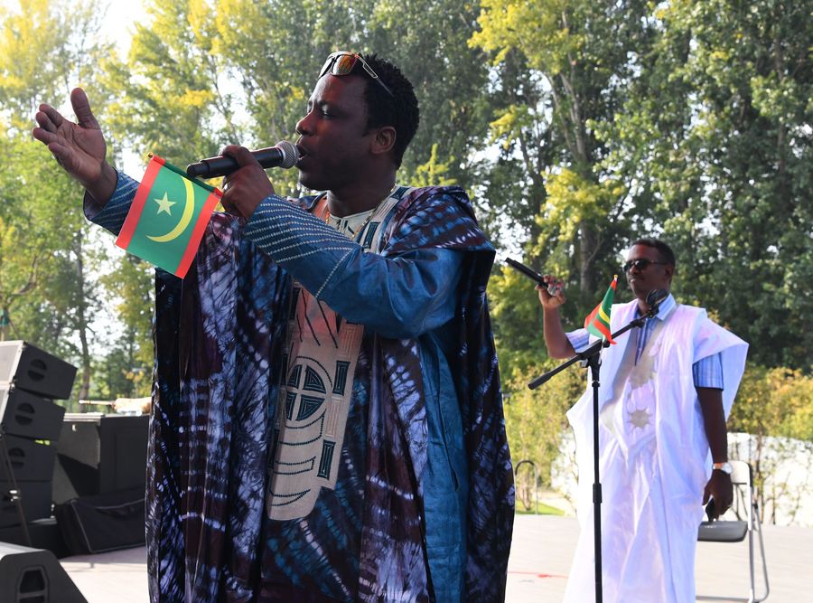 Artists perform during the "Mauritania Day" event of the Beijing International Horticultural Exhibition in Beijing, capital of China, Sept. 27, 2019. (Xinhua/Ren Chao)