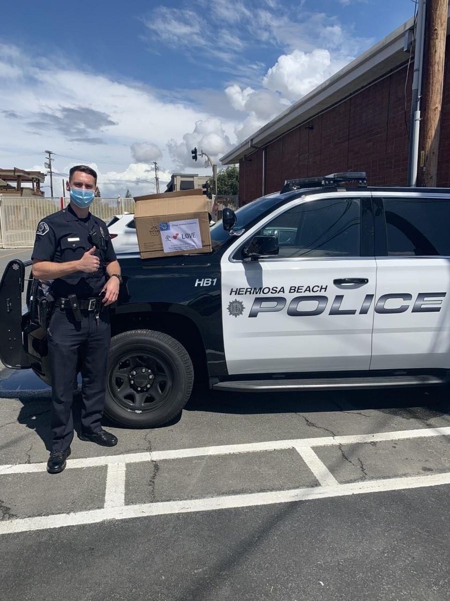 The Hermosa Beach Police Department posted a photo of a police officer wearing one of the face masks donated by the Chinese American community in Palos Verdes and Greater South Bay Area on Wednesday and expressed their gratitude to the Chinese American community for their timely donation of 2,000 face masks.