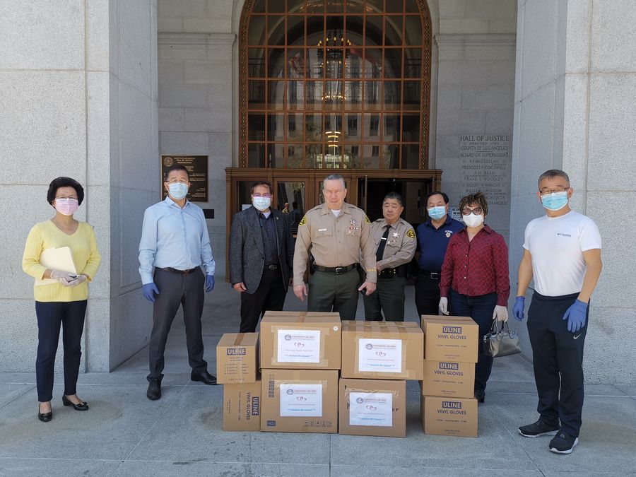 The Beijing Association USA donated 3,300 face masks, 5,500 gloves, as well as disinfectant and other supplies to the City of Industry's Sheriff's Station and other first responders, with more donations on the way.