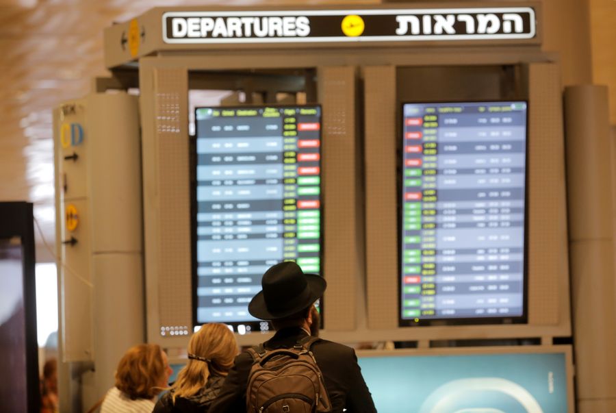 Passengers check the flight schedule at the departures hall of Ben Gurion International Airport, near the central Israeli city of Tel Aviv. (Xinhua/Gil Cohen Magen)