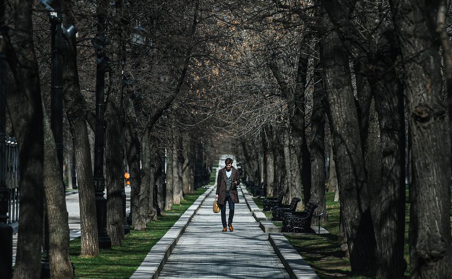 A man walks on a road in Moscow, Russia, April 9, 2020. (Xinhua/Evgeny Sinitsyn)