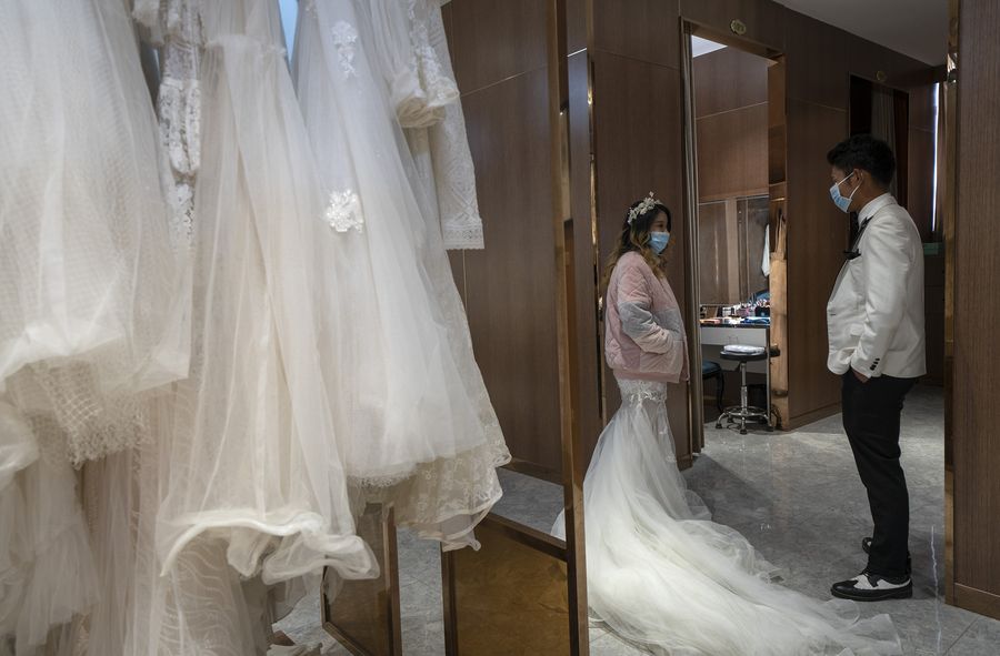As the coronavirus epidemic waned, Wuhan has resumed marriage registration service for citizens since April 3. Related industries such as dress rental and wedding photography also began to operate.