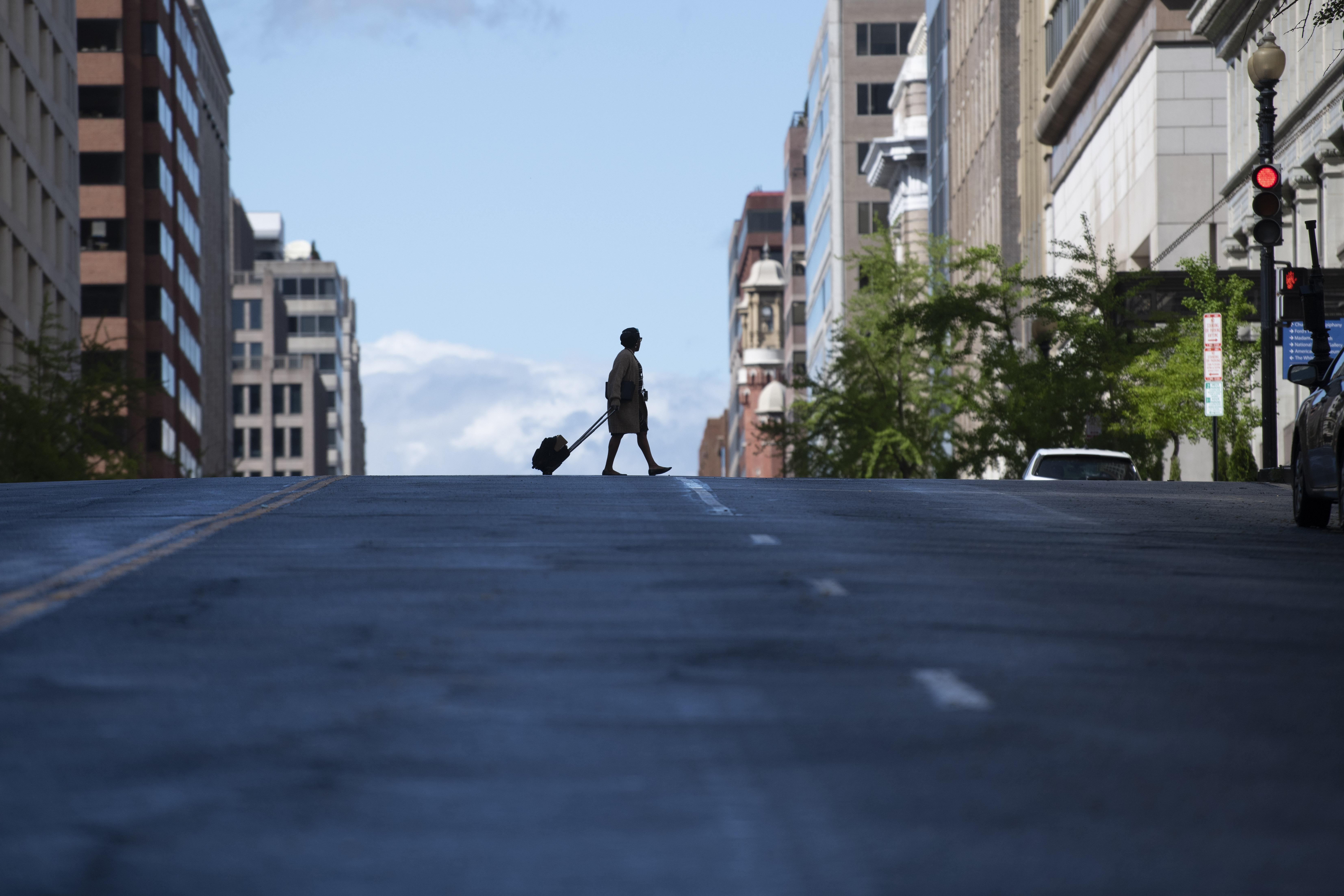A woman crosses a street in Washington D.C., the United States, April 13, 2020. (Xinhua/Liu Jie)