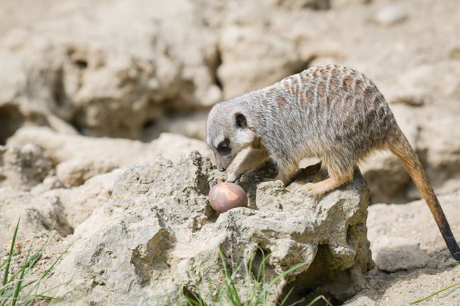 A meerkat plays with an Easter egg during a special Easter Day activity at the Zagreb Zoo in Zagreb, Croatia, April 13, 2020. (Sandra Simunovic/Pixsell/Handout via Xinhua)