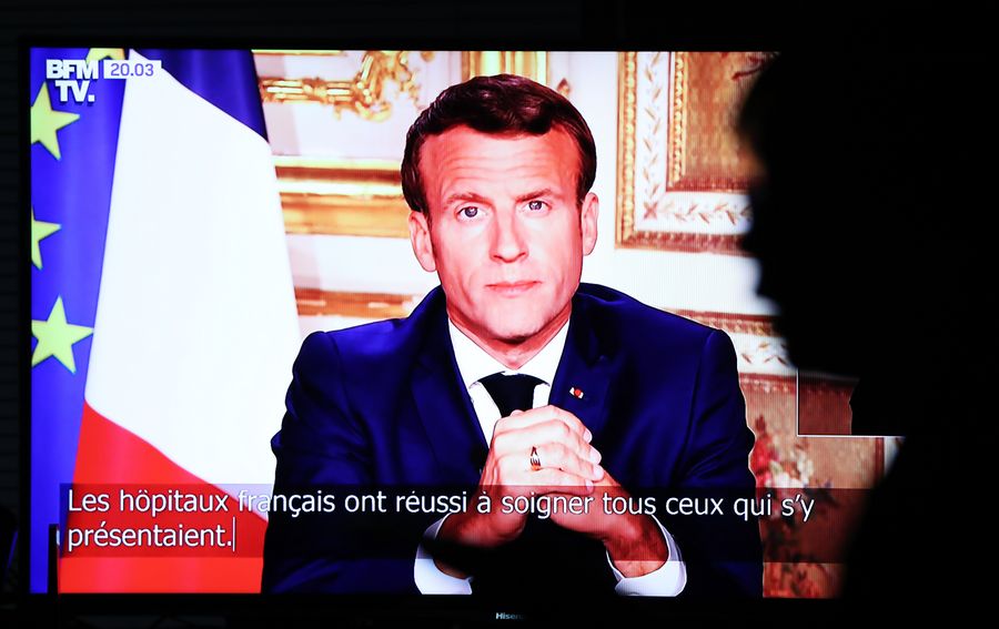 France would remain under a nationwide lockdown until May 11 to stem the spread of COVID-19 and reduce its impact on domestic health institutions, President Emmanuel Macron said on Monday evening. (Xinhua/Gao Jing)
