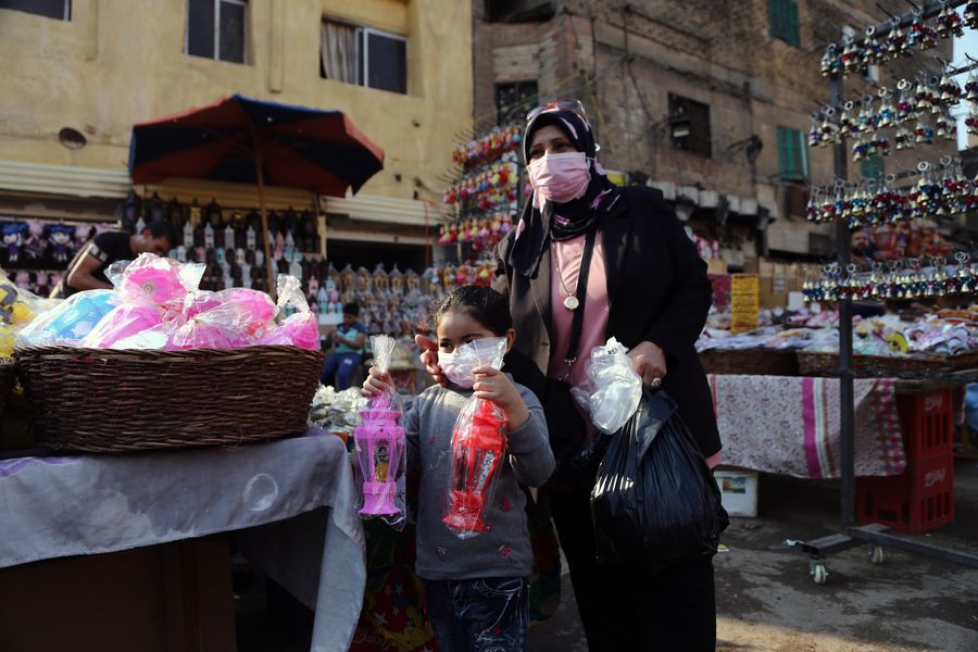 People are seen at a lantern bazaar in Cairo, Egypt on April 12, 2020. (Xinhua/Ahmed Gomaa)