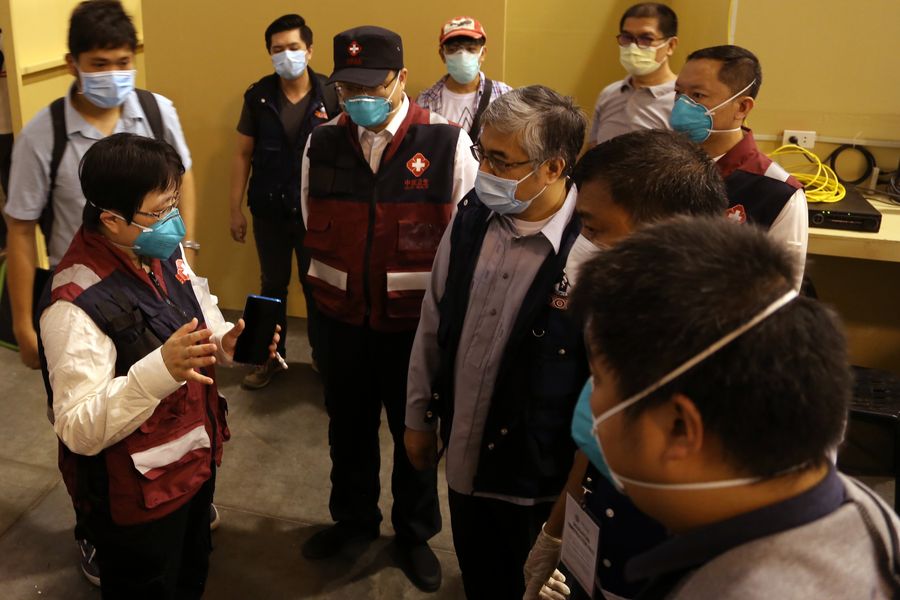 The Chinese medical expert team visits a converted COVID-19 quarantine facility at the Philippine International Conference Center (PICC) on April 14, 2020 in Manila. (Xinhua/Yuan Mengchen)