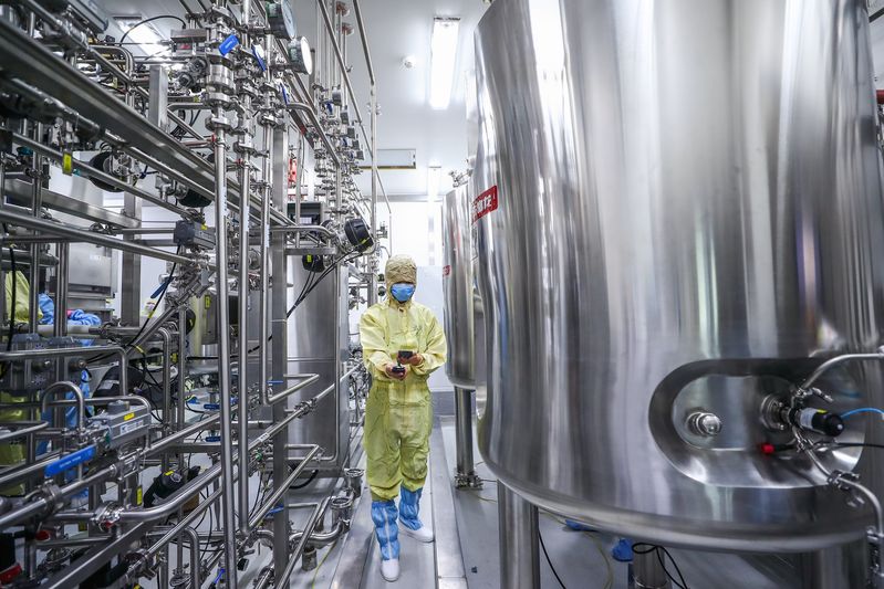 A staff member works in a vaccine production plant of China National Pharmaceutical Group (Sinopharm) in Beijing, capital of China, April 10, 2020. (Xinhua/Zhang Yuwei)