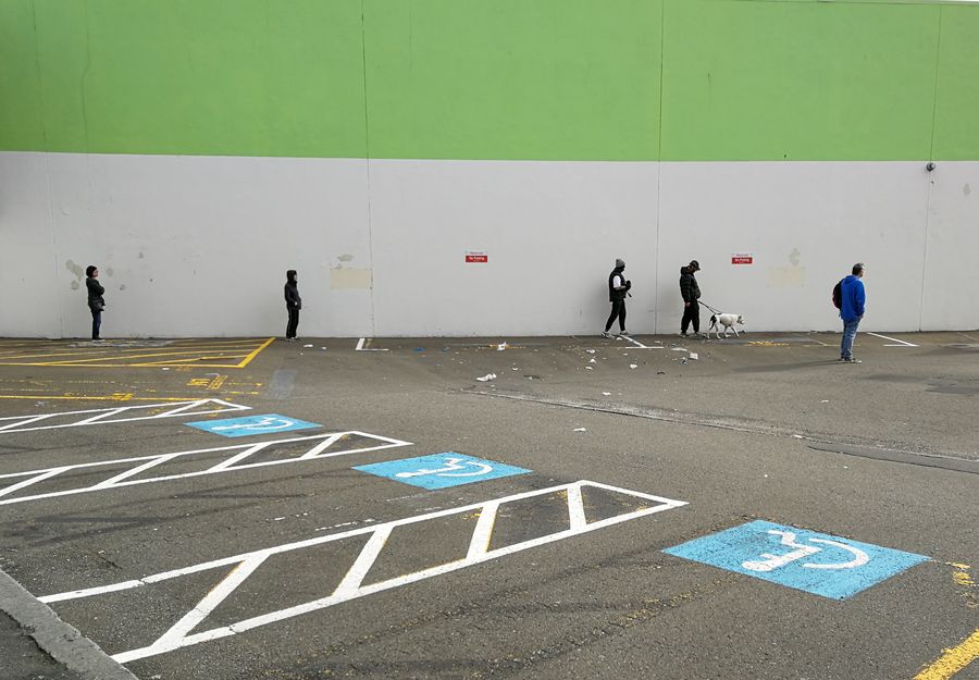 People observe social distancing while entering a supermarket in Wellington, New Zealand, April 11, 2020. (Xinhua/Guo Lei)