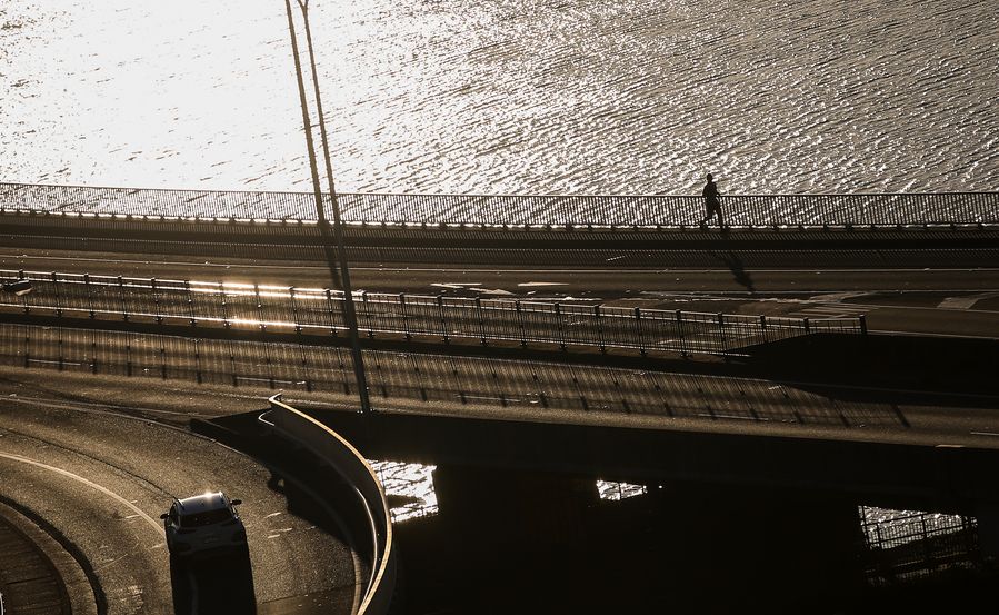 Photo taken on April 15, 2020 shows a man running in Sydney, Australia. (Xinhua/Bai Xuefei)