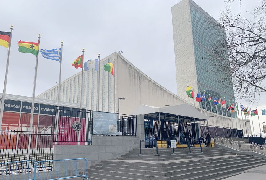 The visitors' entrance to the United Nations headquarters in New York, March 10, 2020. (Xinhua/Wang Jiangang)