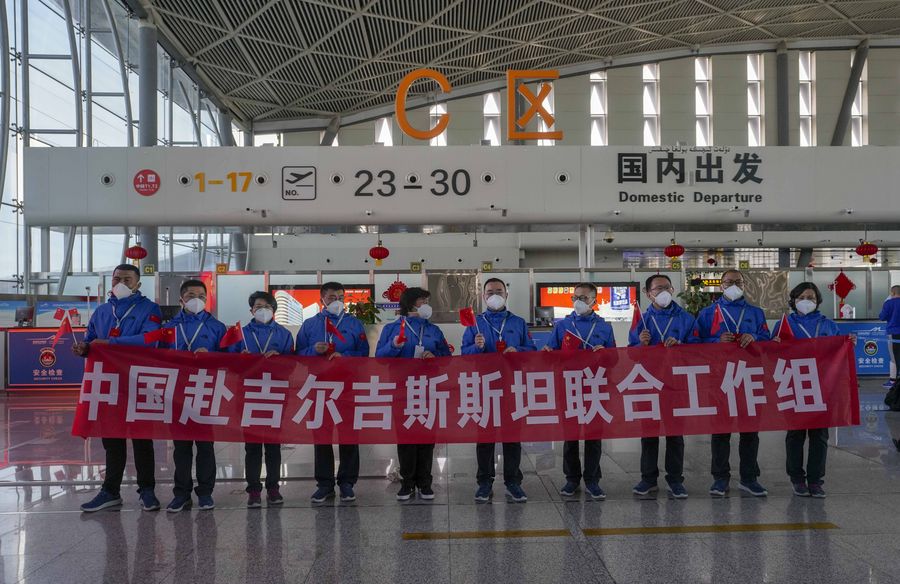 BISHKEK -- A group of Chinese medical workers arrived at Manas International Airport in Kyrgyzstan's capital Bishkek on Monday to assist in the fight against COVID-19.