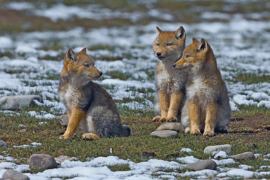 Three Tibetan foxes.(Photo by Bao Yongqing)