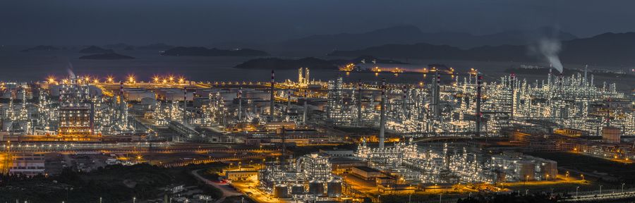 Undated file photo shows the night view of the Huizhou Dayawan Petrochemical Industrial Park in south China's Guangdong Province. Multinational oil and gas corporation ExxonMobil Wednesday broke ground on its solely-funded chemical complex in Huizhou. (Huizhou Information Office/Handout via Xinhua)