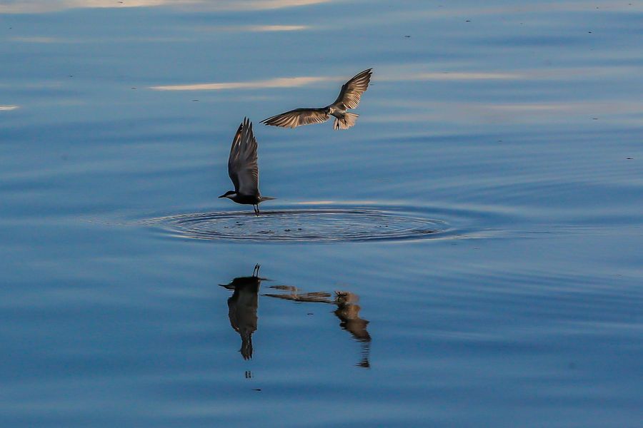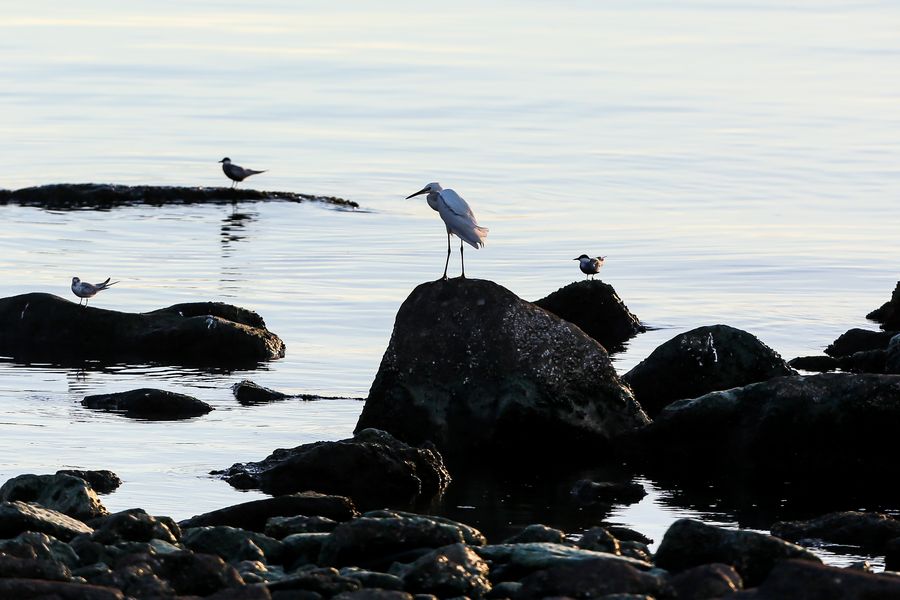 Birds are seen during sunset in Manila Bay in Pasay City, the Philippines on April 22, 2020. (Xinhua/Rouelle Umali)