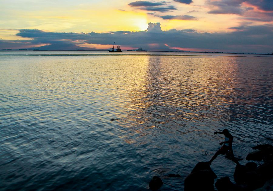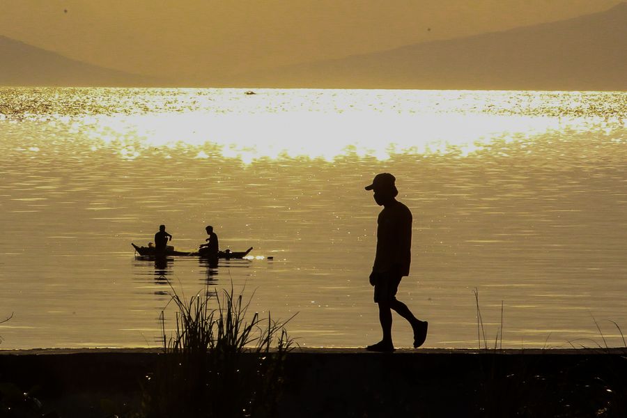 A man walks along the bayside during sunset in Manila Bay in Pasay City, the Philippines on April 22, 2020. (Xinhua/Rouelle Umali)