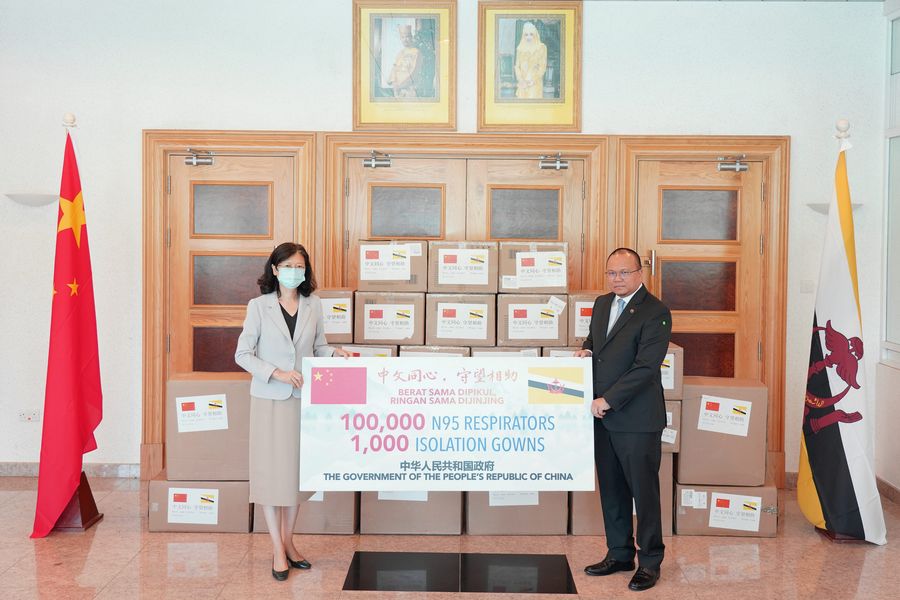 The Chinese government donated over 100,000 N95 respirators and 1,000 disposable isolation gowns to Brunei and the two countries vowed to strengthen cooperation in containing and responding to the COVID-19 outbreak.