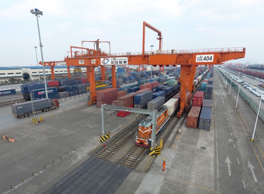 The China-Europe freight train service connects Chengdu with 26 overseas destinations and 15 Chinese cities.