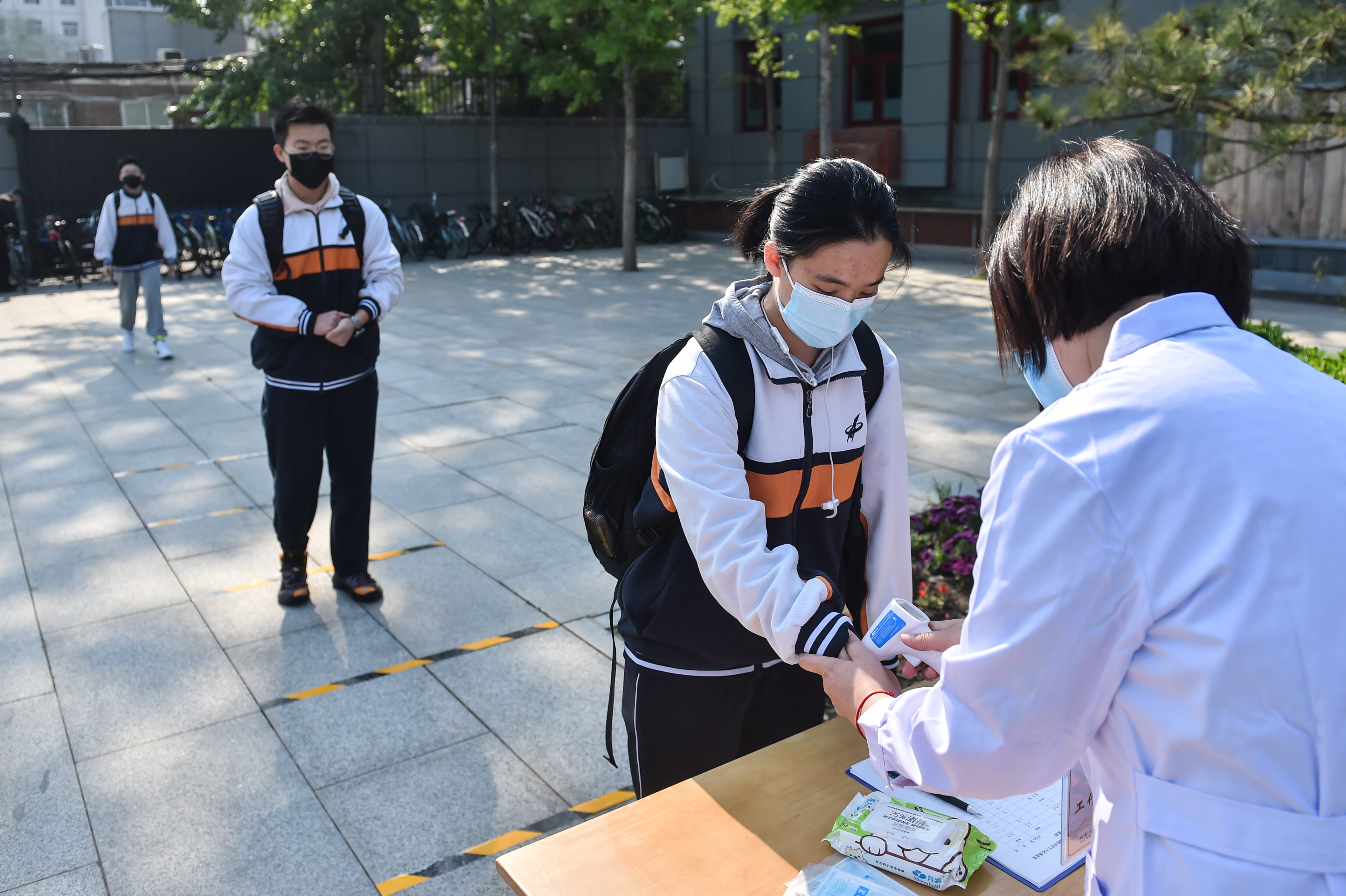 In Beijing, nearly 50,000 senior students of high schools returned to campus to start their postponed new semester on Monday as the COVID-19 epidemic situation has been eased. Many schools have launched educational activities themed on epidemic prevention and control as their first class after reopening.