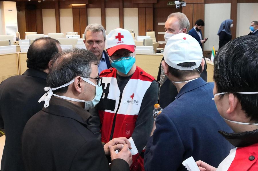 Chinese medical team members meet with Iranian medical experts in Tehran, Iran, March 7, 2020. (Xinhua)