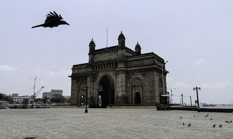 Photo taken on April 26, 2020 shows the Gateway of India during a nationwide lockdown due to the spread of COVID-19, in Mumbai, India. (Str/Xinhua)