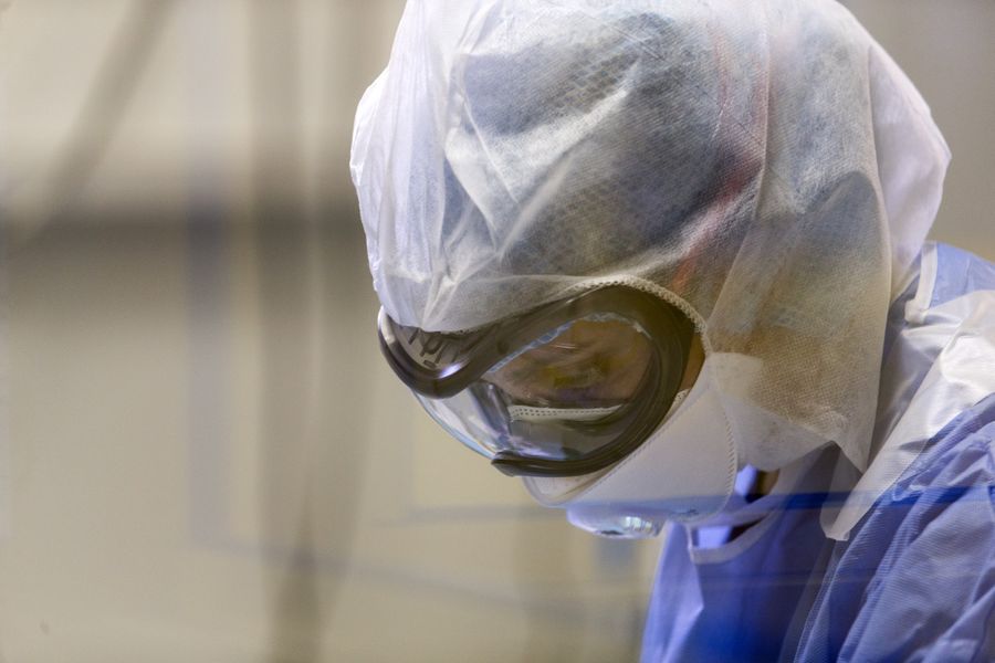 A medical worker is seen at Evaggelismos General Hospital in Athens, Greece, on April 24, 2020. (Xinhua/Marios Lolos)