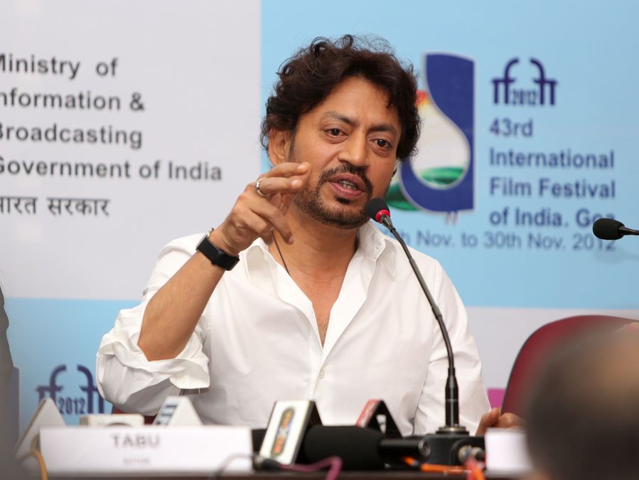 File Photo: Irrfan Khan, actor of director Ang Lee's film Life of Pi, answers questions during a press conference in Media Center of the 43rd International Film Festival of India in Panaji, capital city of coastal Goa State, India, Nov. 21, 2012. (Xinhua/Li Yigang)
