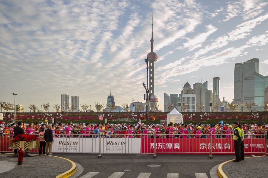 Competitors take part in the 2019 Shanghai International Marathon in Shanghai, east China, Nov. 17, 2019. (Photo by Wang Xiang/Xinhua)
