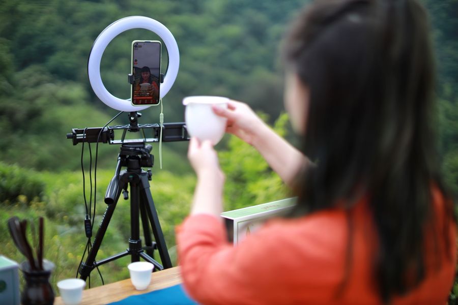 Tea farmers and companies in Yuqing County, southwest China's Guizhou Province present the process of tea-making on livestream platforms to promote tea sales.