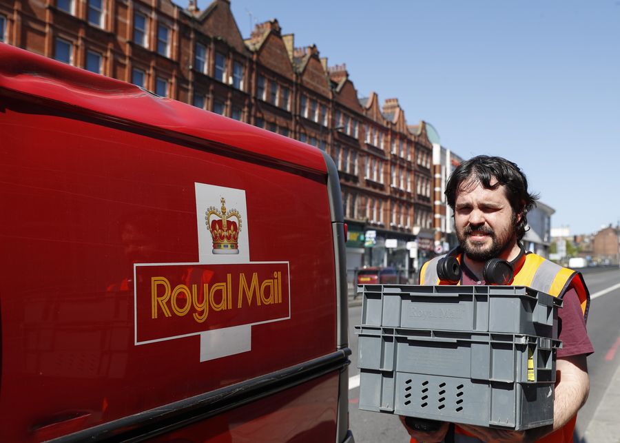 Mail delivery man Dale Alexander works in London, Britain, April 21, 2020. (Xinhua/Han Yan)