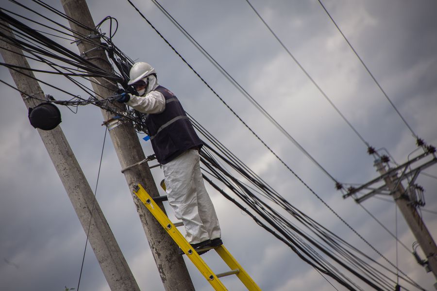 Ivan Ante performs maintenance work for Internet infrastructure in Quito, Ecuador, April 28, 2020. (Photo by Santiago Armas/Xinhua)