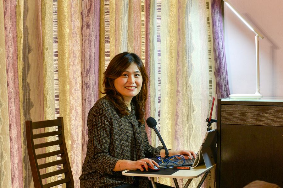Assistant professor Chally Lim teaches students online at home in Kuala Lumpur, Malaysia, April 28, 2020. (Photo by Chong Voon Chung/Xinhua)