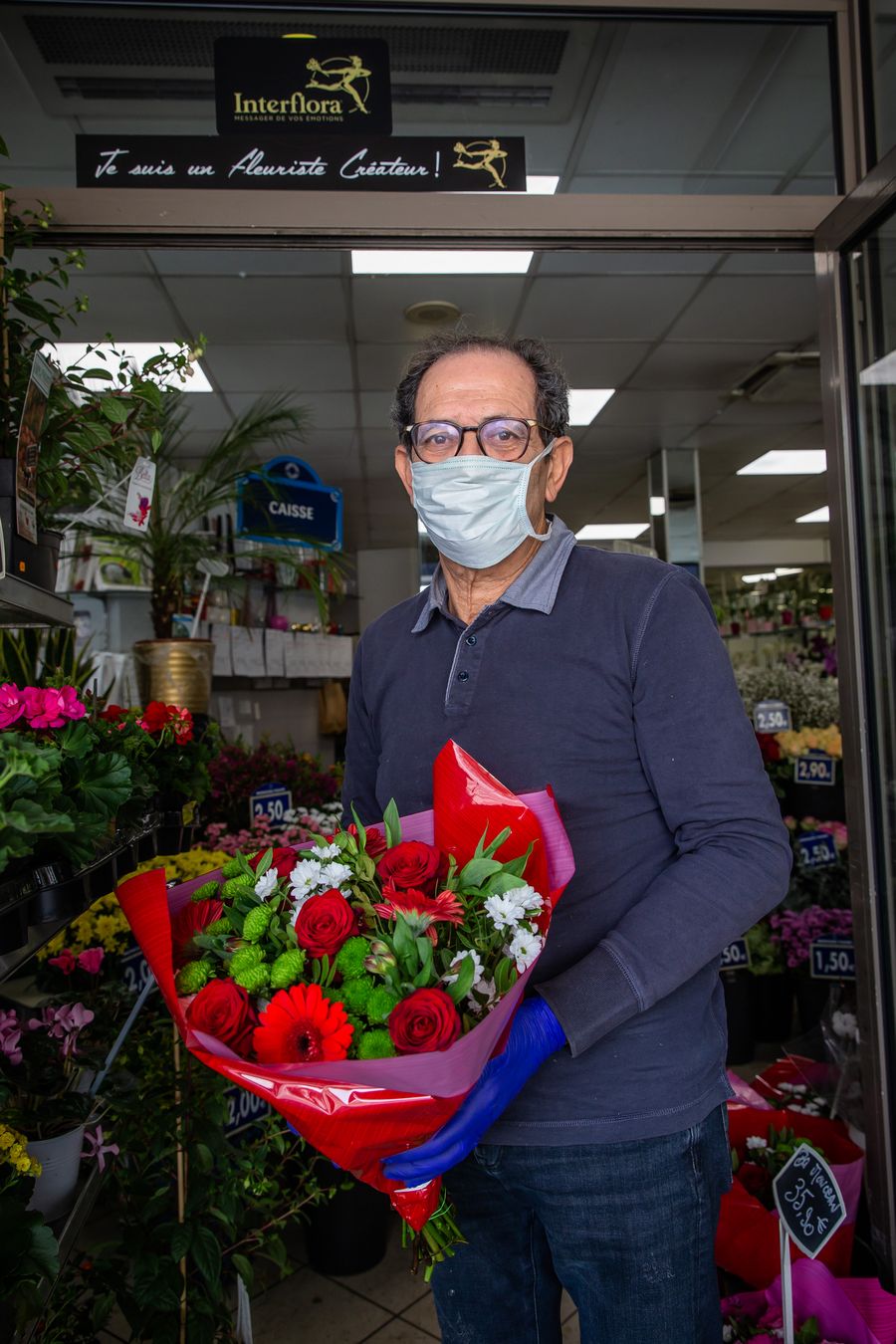 Florist Gerard stands outside a flower shop in Paris, France, April 21, 2020. (Photo by Aurelien Morissard/Xinhua)