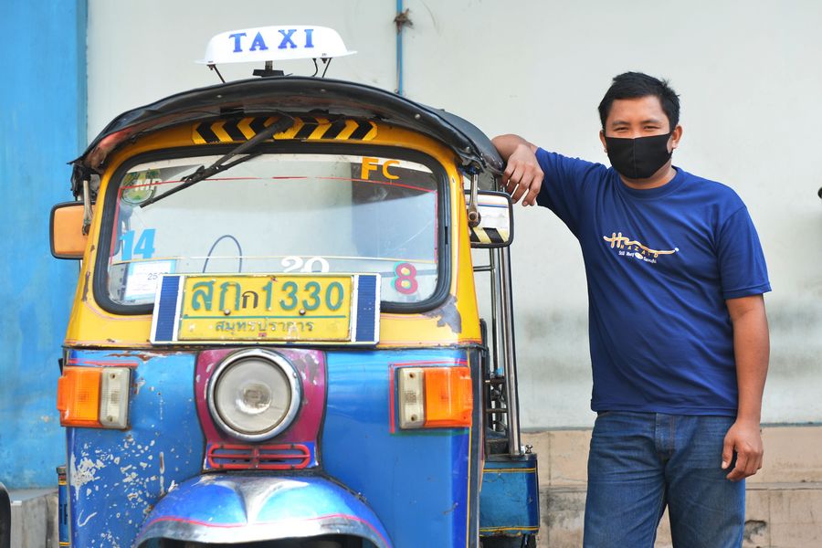 Tuk tuk driver Uthai Bo-kae-pipat poses for a photo in Bangkok, Thailand, April 20, 2020. (Photo by Rachen Sageamsak/Xinhua)