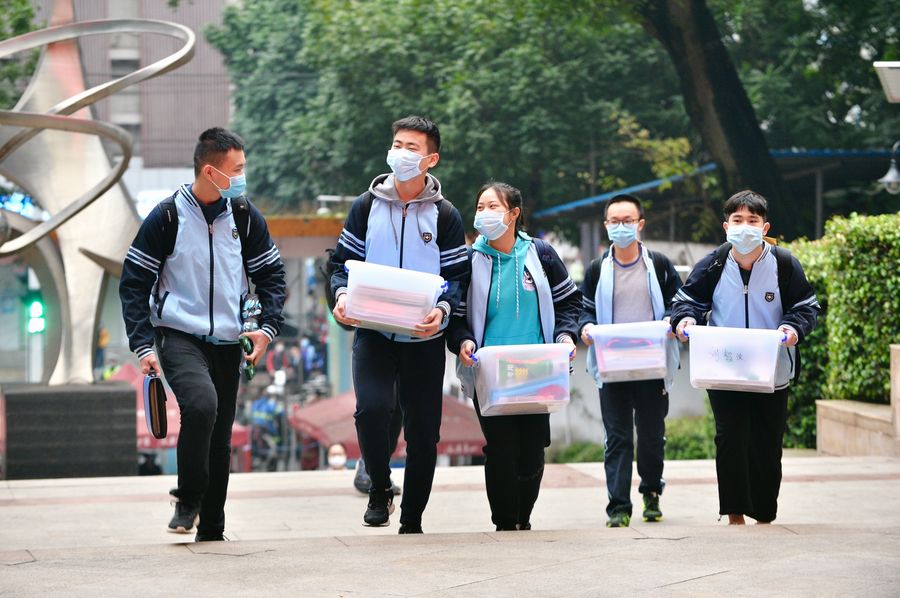 Students return to the No. 2 High School in Nanning, south China's Guangxi Zhuang Autonomous Region, April 7, 2020. (Xinhua/Cui Bowen)