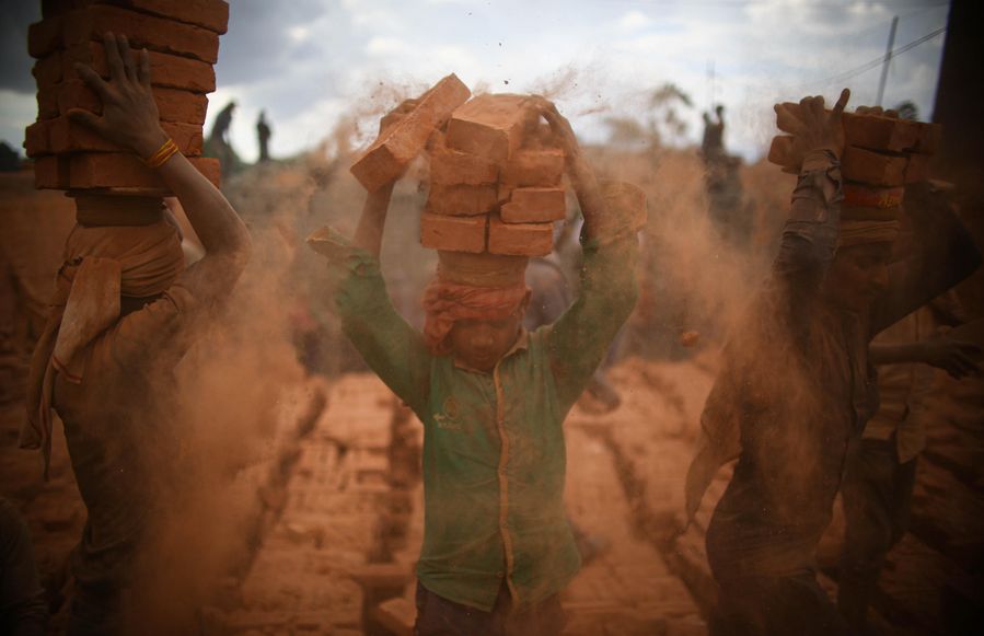 People work at a brick factory in Bhaktapur, Nepal, April 30, 2020. (Photo by Sulav Shrestha/Xinhua)■