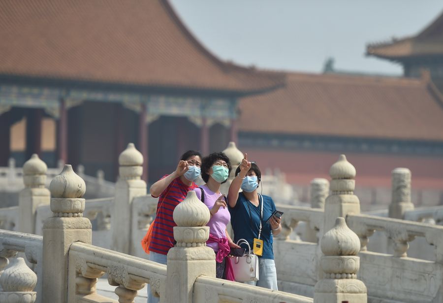 Visitors tour the Palace Museum in Beijing, capital of China, May 1, 2020. China's Palace Museum, also known as the Forbidden City, partially reopened on Friday, the first day of a five-day public holiday. Visitors need to make reservations online, and the daily number of visitors is limited to 5,000. The Palace Museum stopped admitting visitors from Jan. 25 to curb the spread of the novel coronavirus disease (COVID-19). (Xinhua/Chen Zhonghao)