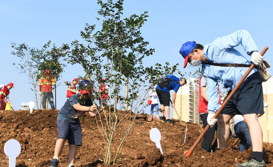 People take part in a tree planting activity marking the Chinese Youth Day in Haikou, south China's Hainan Province, May 4, 2020. (Xinhua/Yang Guanyu)