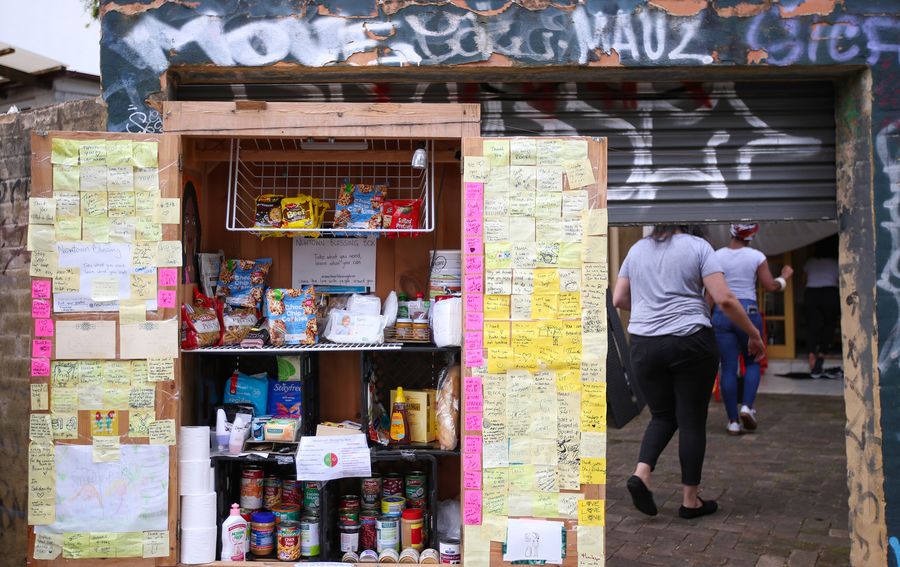 "Take what you need and leave what you can," three Australian girls set up a "Newtown Blessing Box", a closet-like street pantry, to help share groceries and food for their local community during the COVID-19 pandemic.