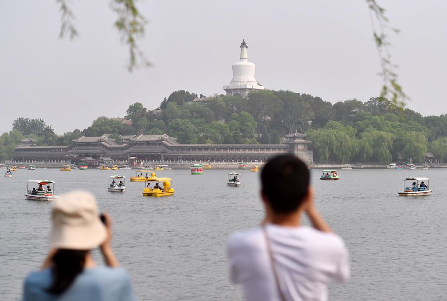 Tourists visit Beihai Park in Beijing, capital of China, May 3, 2020. (Photo by Chen Zhonghao/Xinhua)
