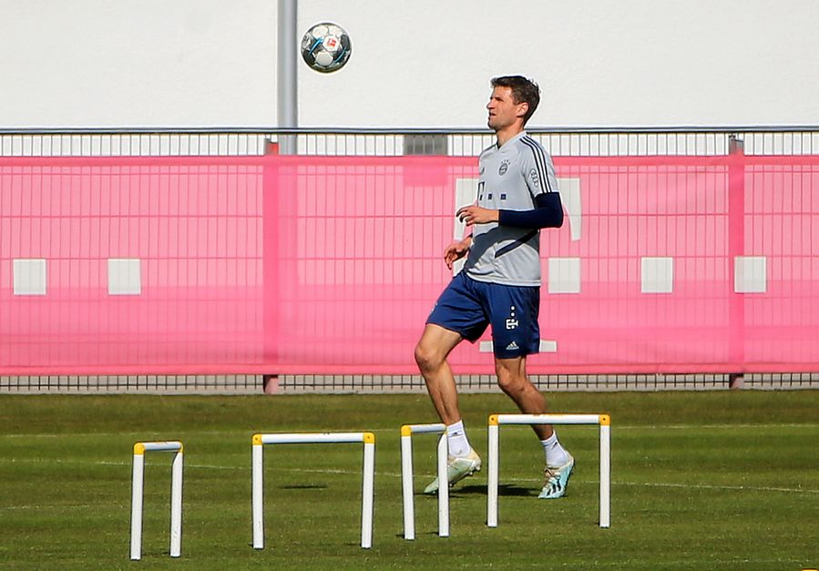 Thomas Mueller of Bayern Munich attends a training session in Munich, Germany, on April 6, 2020. Bayern Munich resumed training sessions on Monday after the COVID-19 outbreak. (Xinhua/Philippe Ruiz)