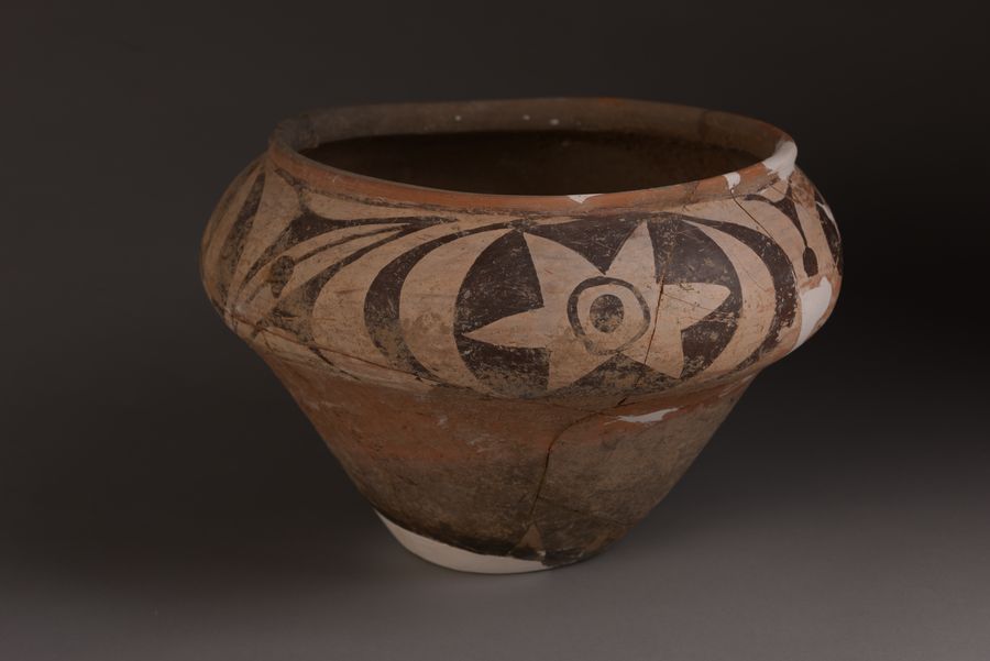 Undated file photo provided by Zhengzhou Municipal Institute of Archaeology shows a painted pottery ware unearthed in the Shuanghuaishu Remain in Gongyi City, central China's Henan Province. (Xinhua)