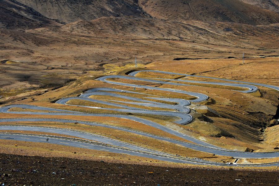 Photo taken on May 4, 2020 shows a view of a mountain road in the Mount Qomolangma National Nature Reserve in southwest China's Tibet Autonomous Region. (Xinhua/Zhang Jingpin)