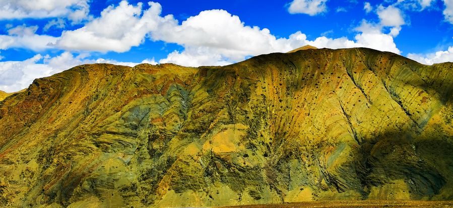 Mobile photo taken on May 3, 2020 shows shadow of clouds on a mountain at the Mount Qomolangma National Nature Reserve in southwest China's Tibet Autonomous Region. (Xinhua/Shen Hongbing)