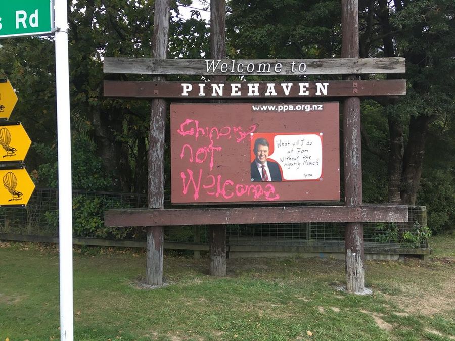 Graffiti with racially motivated content was seen in Wellington, New Zealand. (Photo courtesy of Human Rights Commission)