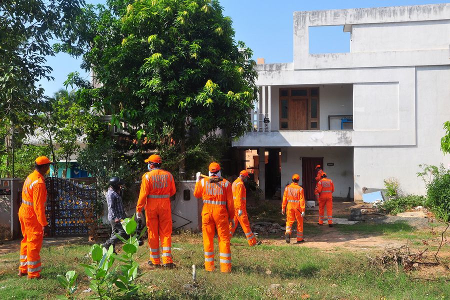 Members of the National Disaster Response Force (NDRF) work after a gas leakage at the "LG Polymers" chemical plant in the Vishakhapatnam district of Andhra Pradesh, India, May 7, 2020. (Str/Xinhua)