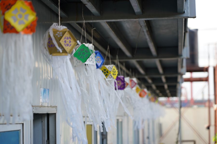 Vesak festival is celebrated in Colombo Port City, Sri Lanka, May 7, 2020. (Photo by Peng Bo/Xinhua) ■