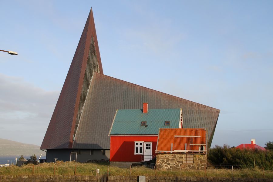 Photo taken on Aug. 19, 2013 shows a Faroe-style church in Torshavn, Faroe Islands. The Faroe Islands are an island group and archipelago under the sovereignty of the Kingdom of Denmark, situated between the Norwegian Sea and the North Atlantic Ocean. (Xinhua/Yang Jingzhong)