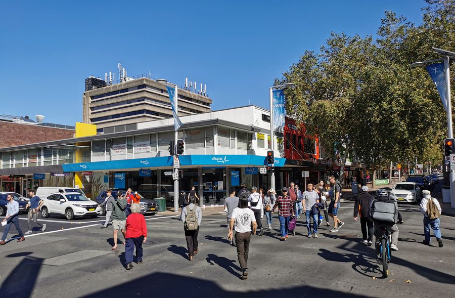 Pedestrians walk across a traffic light in Sydney, Australia, May 8, 2020. (Xinhua/Bai Xuefei)