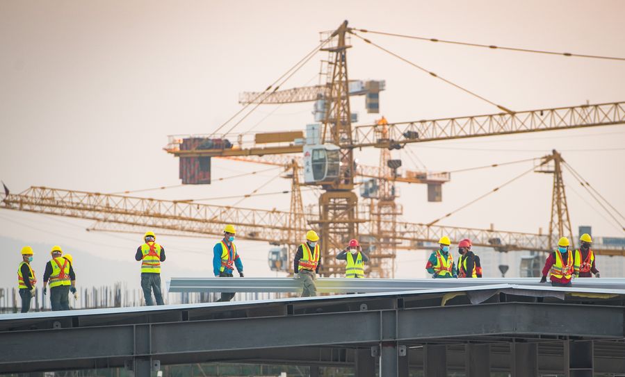People work at the construction site of Leishenshan Hospital in Wuhan, Feb. 4, 2020. (Xinhua/Xiao Yijiu)